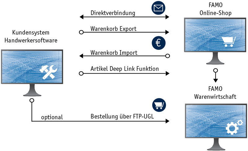 - direkte Verbindung von Handwerkersoftware und FAMO Online-Shop