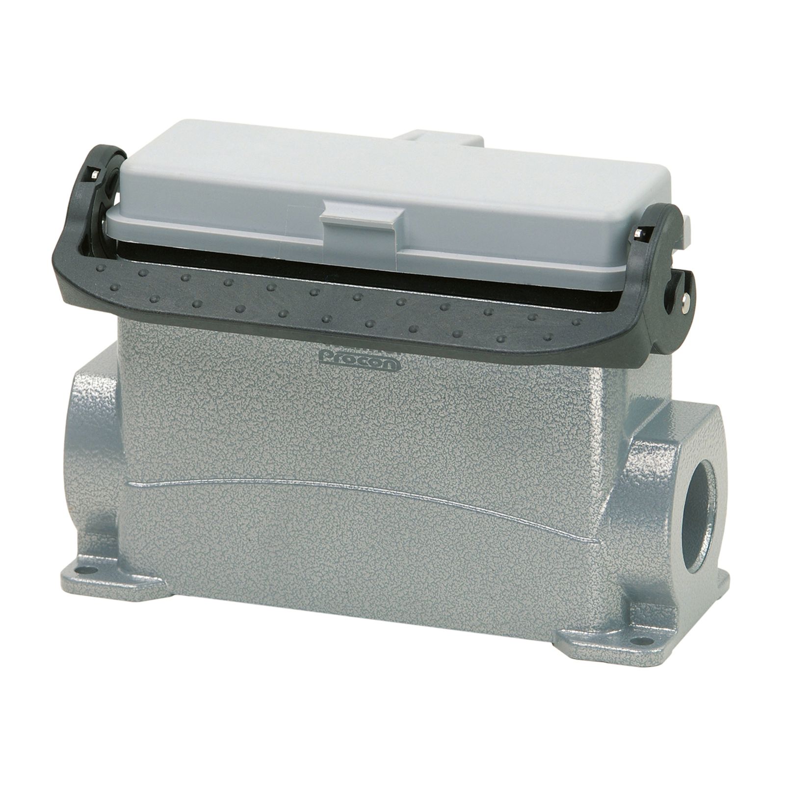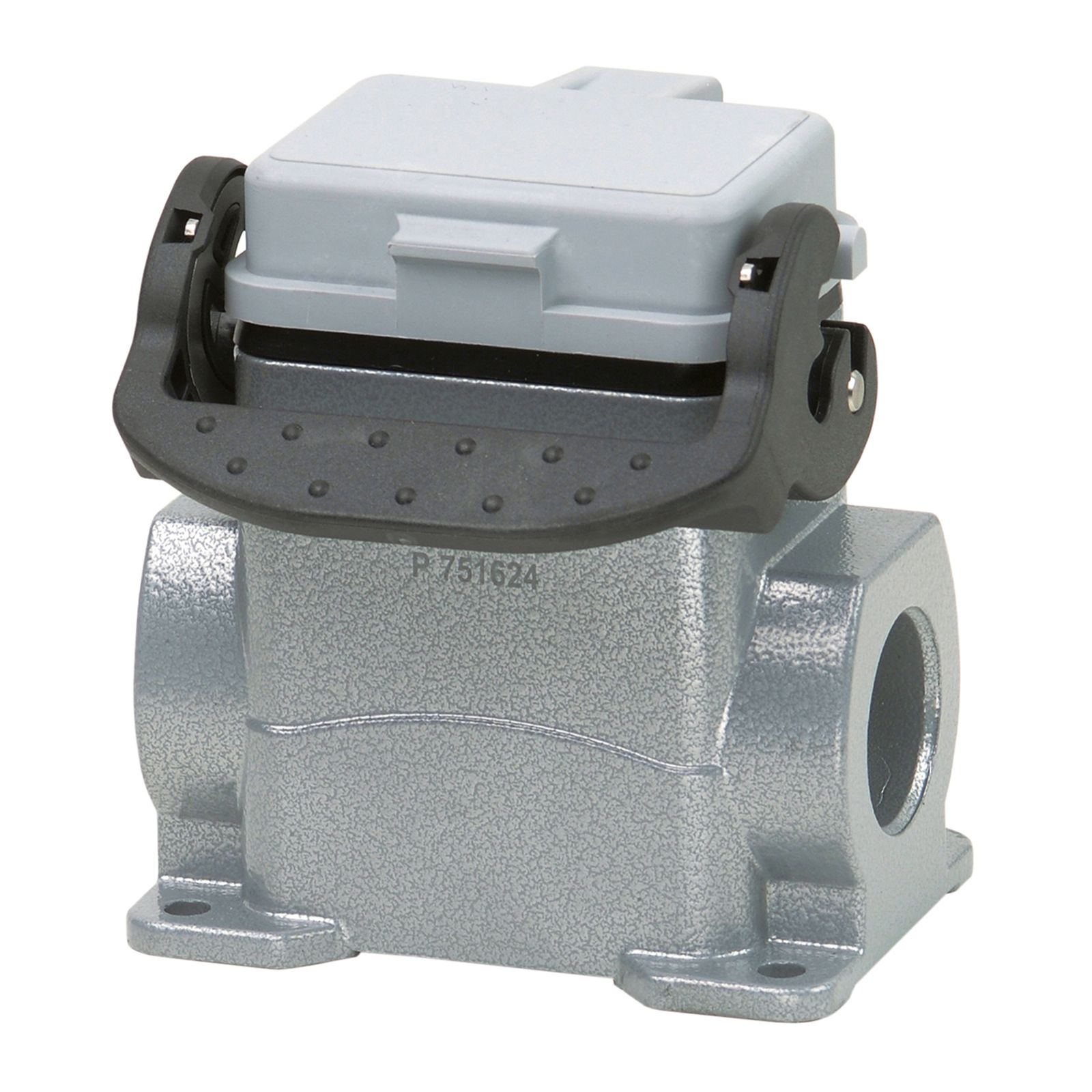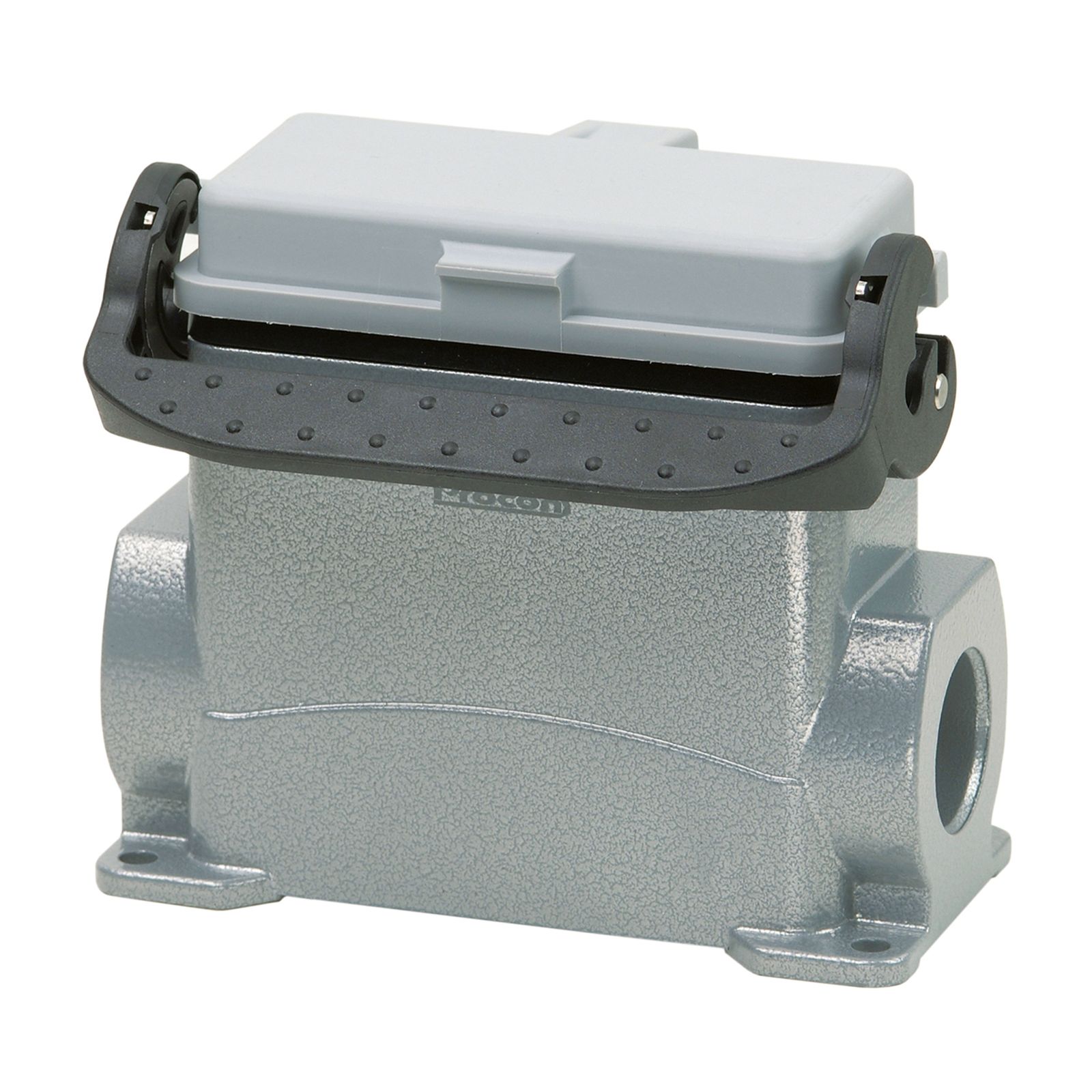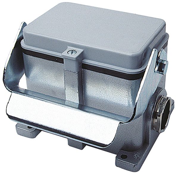 WALTHER Sockelgehäuse Aluminium-Druckguss Gehäuse der Höhe 53mm mit Längsverriegelungsbügel aus Kunststoff mit einem M20 Stutzen und Klappdeckel aus Kunststoff Schutzart: IP658 für die Baureihen B10, BB18, DD42 und MOB10