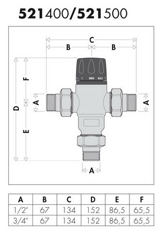 Caleffi Thermomischer 521 3/4", 30-65 °C, verchromt, einstellbar