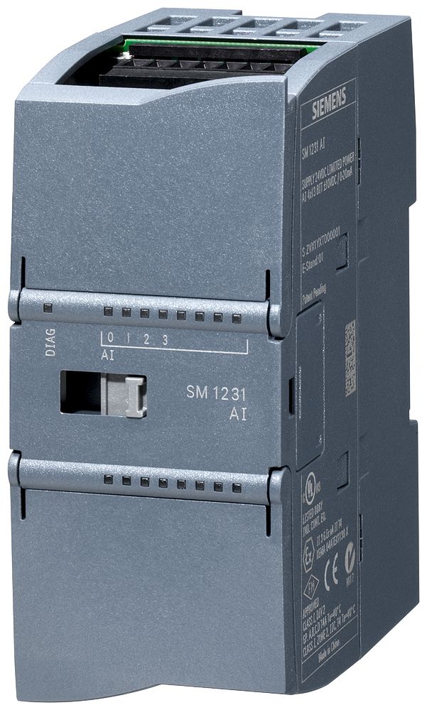 SIMATIC S7-1200, Analogeingabe, SM 1231, 4 AI, +/-10V, +/-5V, +/-2.5V, oder 0-20mA/4-20mA, 12 Bit+Vorzeichen (13 Bit ADC) SIMATIC S7-1200 Basic Controller - flexibel durch vielfältige Kommunikationsmöglichkeiten. Mit Signalmodulen können Sie die Konfiguration Ihrer SIMATIC S7-1200 (ausgenommen CPU 1211C) individuell nach Ihren Erfordernissen anpassen. Dazu steht eine Reihe von digitalen und analogen Eingangs-, Ausgangs- und Mischmodulen zur Verfügung, auch in fehlersicheren Varianten. Durch diese feingranulare Aufbaumöglichkeit sparen Sie Platz im Schaltschrank und optimieren Ihre Hardwarekosten.