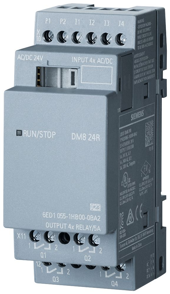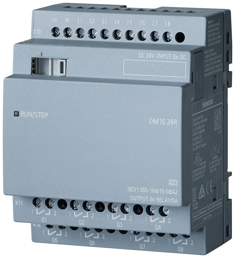 LOGO! DM16 230R Erweit.-Modul, SV/E/A: 230V/230V/Relais, 4TE, 8 DE/8 DA für LOGO! 8 Die LOGO!-Erweiterungsmodule ermöglichen es, eine LOGO!-Konfiguration sehr individuell auszubauen. Ein LOGO! 8 Grundgerät kann auf 24 digitale Eingänge, 20 digitale Ausgänge, 8 analoge Eingänge und 8 analoge Ausgänge ausgebaut werden. Hierfür stehen zehn verschiedene Erweiterungsmodule zur Verfügung, die bei unterschiedlicher Eingangsspannung die Ergänzung um digitale und analoge Ein- und Ausgänge ermöglichen.