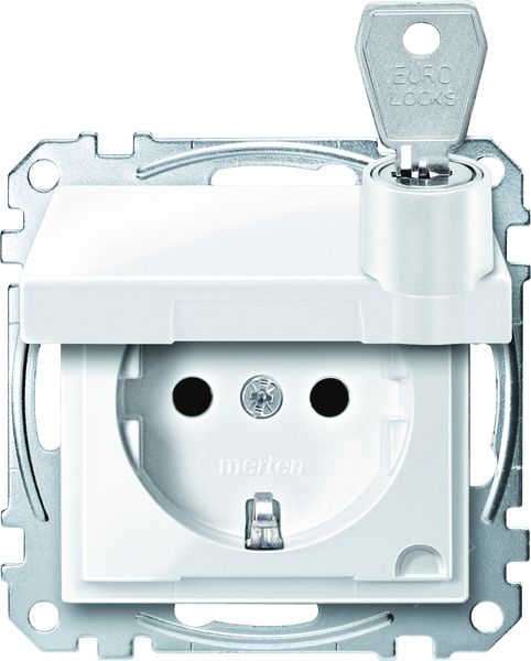 Merten Steckdose 1f alu mt System M UP m.BS Klappd Mit erhöhtem Berührungsschutz