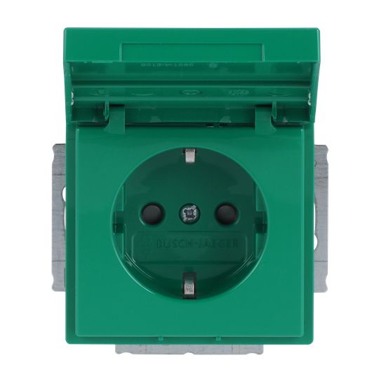 Steckdose 1f gn glz UP m.BS Klappd IP20 BSF Mit erhöhtem Berührungsschutz
