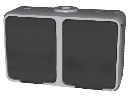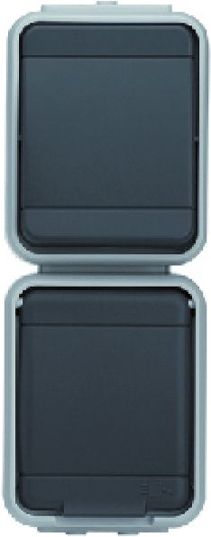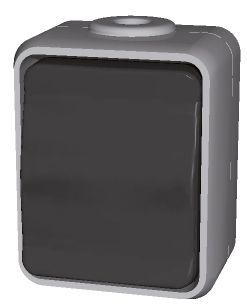 Steckdose 1-fach, 16 A 250V AC, Farbe licht-/basaltgrau, für Aufputzmontage, Schutzart IP 44, mit zwei Leitungseinführungen, Steckklemmen Klemmbereich für Kupferleiter 1,5 mm und 2,5 mm, Verbindungsklemmen nach VDE 0620.