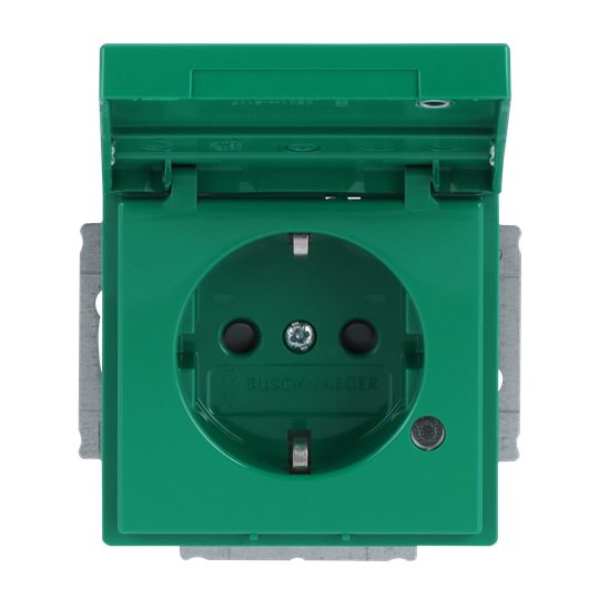 Steckdose 1f gn glz UP Klappd IP20 BSF Textfeld/Beschriftungsfläche