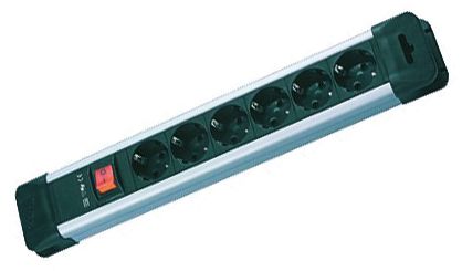 PRIMO Steckdosenleiste 1xSchalter 6xSchutzkontaktsteckdosen 35° schwarz Zuleitung: 2,0m H05VV-F 3G1,5mm² schwarz mit Schutzkontaktwinkelstecker verpackt im Polybeutel