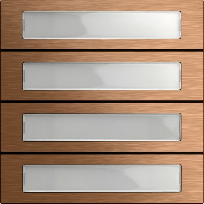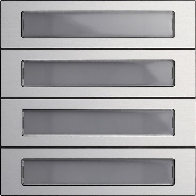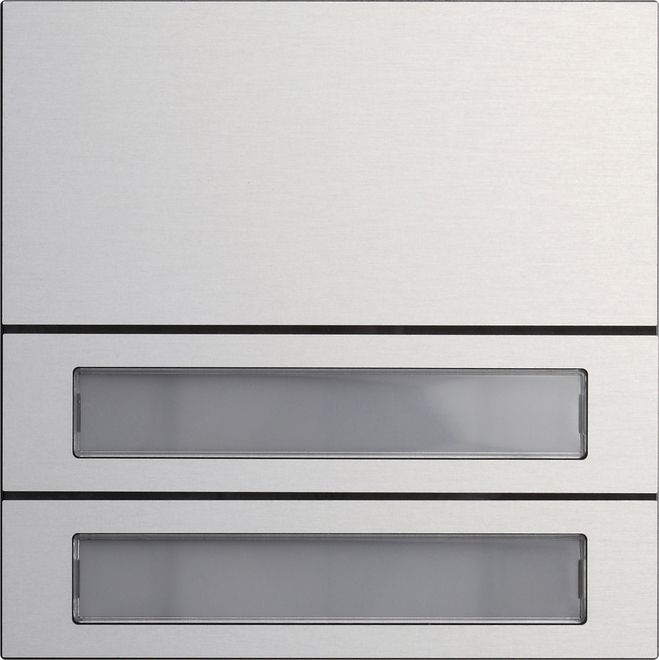 System106 RuftastenmodulEdelstahl 3fach Merkmale: Angenehm zu bedienende, vandalismussichere und zudem kratzfeste Ruftaster. Funktionsänderungen, z.B. von 2fach auf 4fach, lassen sich einfach durch Ersetzen der Tasten realisieren. Verschiedenen Beschriftungsvarianten möglich. Hinweise: Professionelle Beschriftung über den Gira Beschriftungsservice www.beschriftung.gira.de. Lieferumfang: