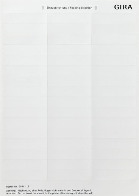Tastsensor 3 Plus 6fach (2+4) für KNX Reinweiß glänzend Flächenschalter Merkmale: Montage auf Busankoppler 3 oder Busankoppler 3 externer Fühler. Demontageschutz durch Verschraubung. Grafikdisplay mit Hintergrundbeleuchtung und vielfältigen Anzeigemöglichkeiten, z. B. Temperatur, Uhrzeit, Datum, Alarm- und Hinweistexte. Weiße Betriebs-LED. Mehrfarbige Status-LED (rot, grün, blau) über die ETS parametrierbar. Interner Temperatursensor zum Messen der lokalen Raumtemperatur. Tastsensoreigenschaften: Wippen- oder Tastenfunktion für jede Bedienfläche einstellbar. Wippenfunktion: Schalten, Dimmen, Jalousiesteuerung, Wertgeber 1 Byte, Wertgeber 2 Byte, Szenennebenstelle, 2-Kanal-Bedienung und manuelle Lüftersteuerung. Tastenfunktion: Schalten, Dimmen, Jalousiesteuerung, Wertgeber 1 Byte, Wertgeber 2 Byte, Szenennebenstelle, 2-Kanal-Bedienung, Reglernebenstelle, Reglerbedienung, Heizungsuhrbedienung und manuelle Lüftersteuerung. Reglernebenstelle oder Reglerbedienung: Betriebsmodusumschaltung, (definierte Wahl eines Betriebsmodus oder Wechsel zwischen verschiedenen Betriebsmodi bei Reglernebenstelle), Wechsel des Präsenzzustands, Sollwertverschiebung. Sperrobjekt zum Sperren von einzelnen Tasten- bzw. Wippenfunktionen. Anzeige einer Alarmmeldung durch Blinken sämtlicher LEDs. Mehrfarbige Status-LED (rot, grün, blau) ist global oder jeweils getrennt konfigurierbar. Über den Bus kann eine überlagerte Funktion aktiviert werden, wodurch Farbe und Anzeigeinformation einzelner Status-LEDs prioritätsbedingt verändert werden können. Betriebs-LED EIN, AUS, automatische Abschaltung oder über Objekt schaltbar. Kommunikationsobjekt zur Helligkeitssteuerung der Status-LED, Beschriftungsfeldbeleuchtung und Hintergrundbeleuchtung des Displays. Raumtemperaturregler-Eigenschaften: Betriebsmodi: Komfort, Stand-by, Nacht und Frost- bzw. Hitzeschutz mit jeweils eigenen Temperatursollwerten (für Heizen und bzw. oder Kühlen). Komfortverlängerung durch Präsenztaste. Frost- bzw. Hitzeschutzumschaltung durch Fensterstatus oder durch Frostschutzautomatik. Anzeige der Raumtemperaturregler-Informationen über das Gerätedisplay. Wahlweise ein oder zwei Regelkreise. Je Heiz- oder Kühlstufe sind verschiedene Regelungsarten konfigurierbar: PI-Regelung (stetige oder schaltende PWM) oder 2-Punkt-Regelung (schaltend). Regelparameter für PI-Regler und 2-Punkt-Regler einstellbar. Interner Temperatursensor und bis zu zwei externe Temperaturfühler (1 x Objekt, 1 x bedrahtet) zur Raumtemperaturmessung möglich. Optionaler externer bedrahteter Fernfühler für z. B. Estrichfühler bei Fußbodenheizung. Heizungsuhr mit 28 Schaltzeiten. LC-Displayeigenschaften: Grafikdisplay mit schaltbarer LED-Hintergrundbeleuchtung. 1-Bereichs- oder 2-Bereichsdarstellung. Textanzeigen im Display in den Sprachen: Deutsch, Englisch, Niederländisch, Norwegisch, Russisch und Polnisch. Weitere Sprachen im Internet verfügbar. Hinweise: Professionelle Beschriftung über den Gira Beschriftungsservice www.beschriftung.gira.de. Lieferumfang: