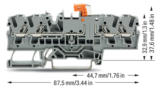 4-Leiter-Trenn- und Messklemme: mit Prüfmöglichkeit: Trennmesserhalter orange: für Tragschiene 35 x 15 und 35 x 7,5: 2,5 mm²: Push-in CAGE CLAMP : 2,50 mm²: grau