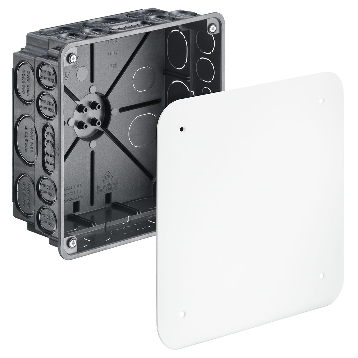 Verbindungsdose UP 107x107x57mm Kst IP2X quadrat| Anzahl der Einführungen | 12 |
