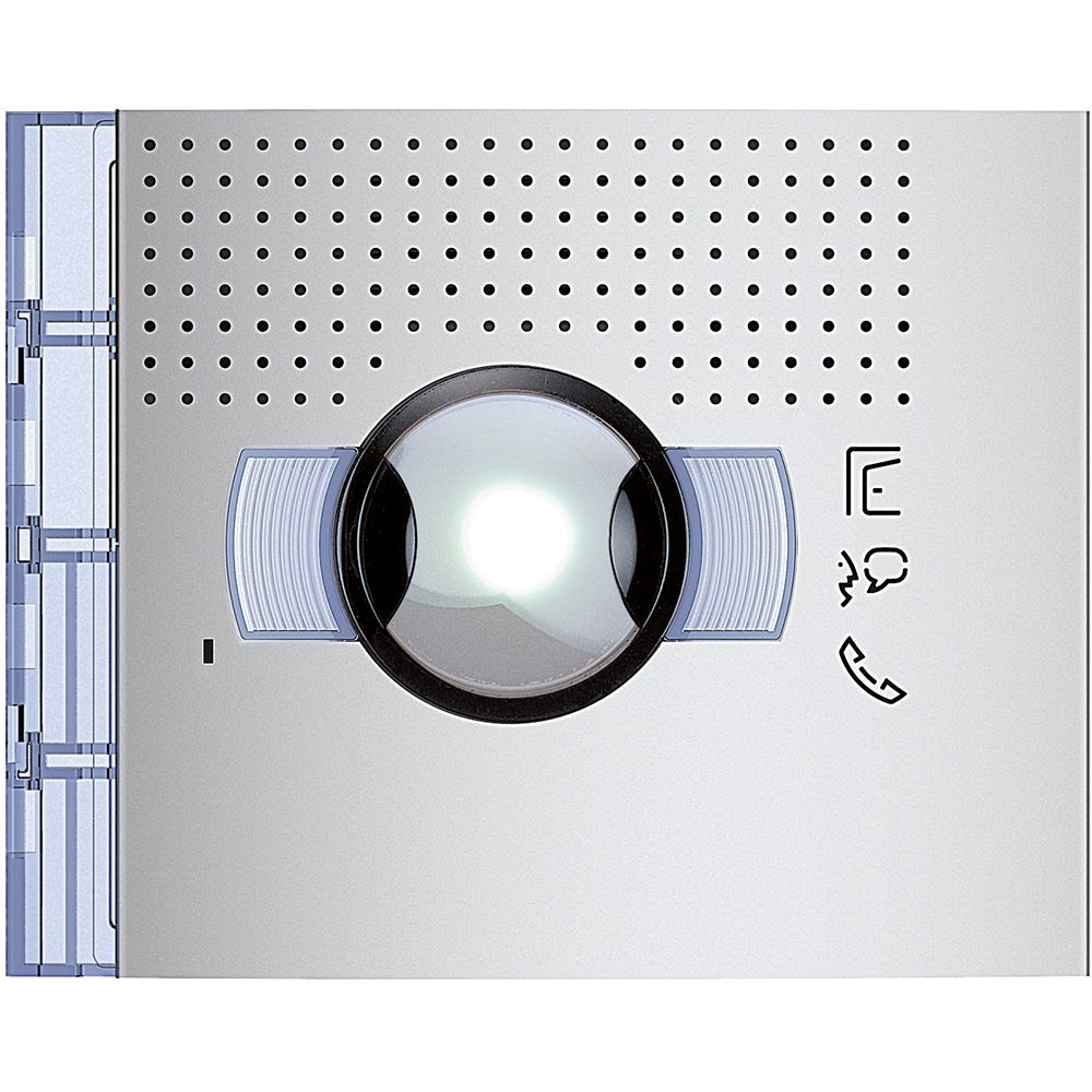 Hörerlose AP-Videohausstation CLASSE100 V16B2-Draht-Bussystem, Farb-LCD-Display 5 (12,7 cm), freies Gegensprechen, neben den beiden physischen Gesprächstasten (Gespräch annehmen bzw. beenden), verfügt sie über 3 Sensortasten für die Funktionen: Tür öffnen, Treppenhauslicht einschalten (Aktivator Best.Nr. 346210 wird benötigt) und Türstation ein- bzw. umschalten. 16 melodische Ruftöne einstellbar. Für Tür-/Etagenruf mit Rufunterscheidung. Lautstärke von Rufton und Gespräch sowie Farbe und Helligkeit des Bildschirms werden über das OSD-Menü eingestellt, welches über einen seitlichen Regler bedient wird. LED-Anzeige für: Ruftonabschaltung, Türöffner- und Verbindungsstatus. Aufputzmontage mittels mitgelieferter Wandhalterung. Ein Tischzubehör (2 Stück von Best.Nr. 344692 werden benötigt) ist separat erhältlich. Anschluss für BUS und Etagenruf. Maße B undefined H undefined T: 164 undefined 165