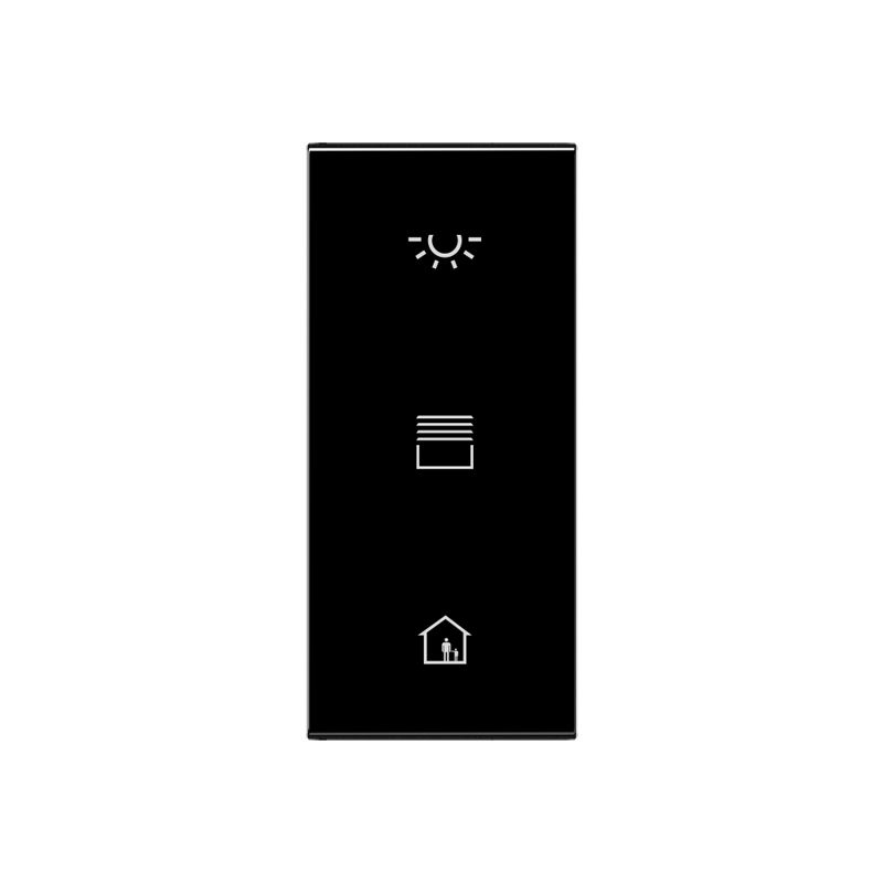 inklusive transparenter Abdeckung Art.-Nr.: A 50 NA inklusive Montageplatte, Klebefolie und Befestigungsschrauben für Tastensatz 3fach, Art.-Nr.: A 503 TSA .. Bestimmungsgemäßer Gebrauch Funksensor zur Übertragung von Schalt-, Dimm-, Jalousiefahr- und Szenenbefehlen Betrieb mit Funkaktoren aus dem eNet-System Montage auf Gerätedose mit Abmessungen nach DIN 49073, Schraubbefestigung auf Wänden oder Klebemontage auf glatten Flächen (Glasscheiben) Produkteigenschaften Je zwei nebeneinanderliegende Tasten gehören zu einem Kanal Anzeige des Aktorstatus bei Statusabfrage durch eine grüne LED je Kanal Anzeige des Übertragungsstatus durch eine rote LED Einschalthelligkeit von Dimmaktoren speicherbar Batteriebetriebenes Gerät (Batteriefach von vorne zugänglich) Signalisierung von Übertragungsfehler abschaltbar Mit eNet-Server einstellbar: Szene Alles-Ein Bediensperren Zusatzfunktionen mit eNet-Server: Vollverschlüsselte Funkübertragung (AES-CCM) ab eNet Server