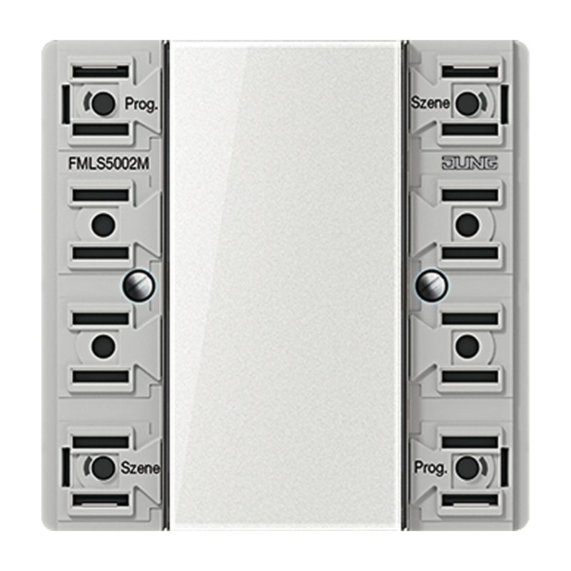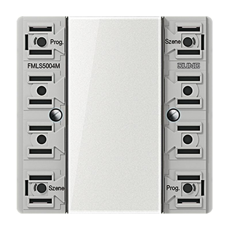 inklusive transparenter Abdeckung Art.-Nr.: LS 50 NA inklusive Montageplatte, Klebefolie und Befestigungsschrauben für Tastensatz 1fach, Art.-Nr.: ..501 TSA .. in der Serie LS Nicht mit Rahmen aus dem FLAT DESIGN kombinierbar. Bestimmungsgemäßer Gebrauch Funksensor zur Übertragung von Schalt-, Dimm-, Jalousiefahr- und Szenenbefehlen Betrieb mit Funkaktoren aus dem eNet-System Montage auf Gerätedose mit Abmessungen nach DIN 49073, Schraubbefestigung auf Wänden oder Klebemontage auf glatten Flächen (Glasscheiben) Produkteigenschaften Je zwei nebeneinanderliegende Tasten gehören zu einem Kanal Anzeige des Aktorstatus bei Statusabfrage durch eine grüne LED je Kanal Anzeige des Übertragungsstatus durch eine rote LED Einschalthelligkeit von Dimmaktoren speicherbar Batteriebetriebenes Gerät (Batteriefach von vorne zugänglich) Signalisierung von Übertragungsfehler abschaltbar Mit eNet-Server einstellbar: Szene Alles-Ein Bediensperren Zusatzfunktionen mit eNet-Server: Vollverschlüsselte Funkübertragung (AES-CCM) ab eNet Server Softwareversion