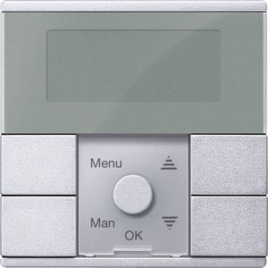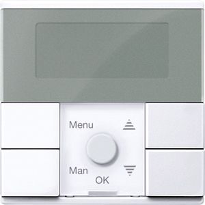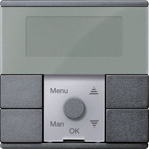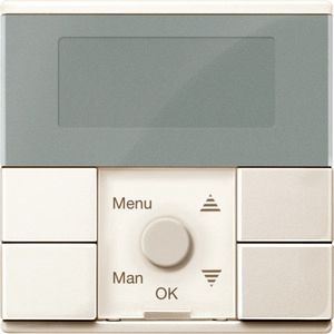 Für System M. Zum programmierten und zeitabhängigen Schalten von Verbrauchern wie Jalousie-/Rollladenmotorenxx Anzahl der Schaltspiele (hoch/runterfahren) Jalousie-Einsätze -Pro Kanal 2 Schaltspiele / Tag. Zentralstellen-Einsatz -Pro PL-Linie 2 Schaltspiele / Tag. Funktionen -Voreingestellte Schaltzeiten (in 2 festen Gruppen Mo-Fr und Sa-So). Menügeführte Bedienung -Gangreserve >6 Stunden. Reset zum Rücksetzen auf Werkseinstellung. Einfache Umschaltung Sommer / Winterzeit. Individuelle Laufzeit programmierbar. Manuelle Betätigung jederzeit möglich. Wählbare Pfeiltastenfunktion für Tasten oder globale Szenen. Lokal Jalousien/Rollladen steuern -Jalousiesteuerungs-Einsatz. Global Jalousien/Rollladen steuern, Szenen aufrufen -Zentralstellen-Einsatz. Bedienelemente 5 Tasten. Anzeigeelemente 5 LED, LCD-Anzeige. Anschluss Modul-Schnittstelle. Zu komplettieren mit Zentralstellen-Einsatz MEG5190-0000. Elektronik-Schalt-Einsatz MEG5151-0000. Elektronik-Schalt-Einsatz, 2fach MEG5152-0000. Relais-Schalt-Einsatz MEG5161-0000. Relais-Schalt-Einsatz, 2fach MEG5162-0000. Jalousiesteuerungs-Einsatz MEG5165-0000. Universal-Dimmer-Einsatz MEG5171-0000. Universal-Dimmer-Einsatz, 2fach MEG5172-0000. Steuerungs-Einsatz 1-10 V MEG5180-0000. DALI-Steuerungs-Einsatz MEG5185-0000. Material Thermoplast