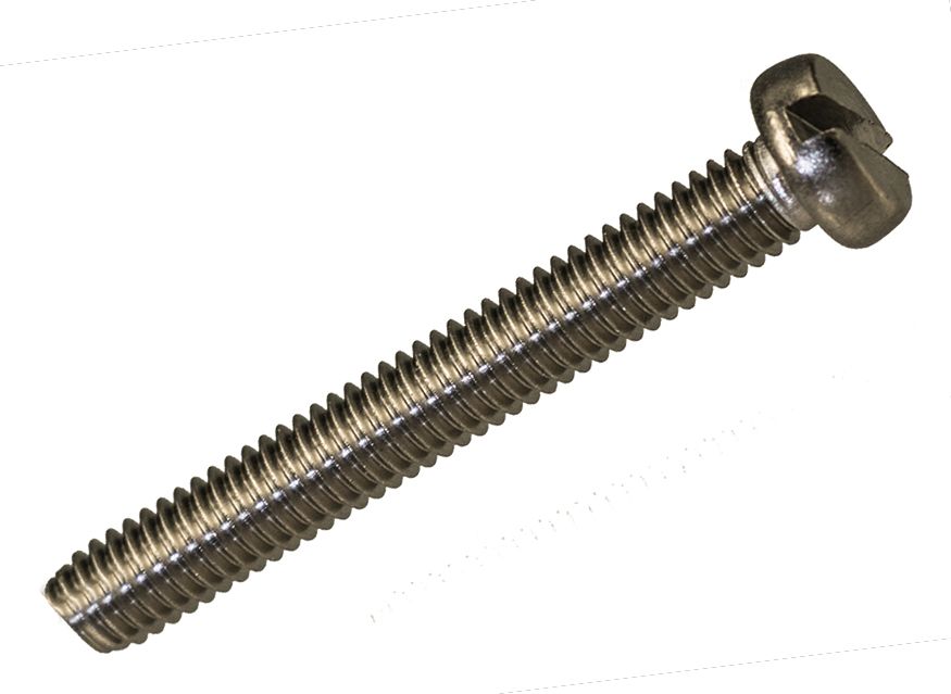 Zylinderkopfschraube mit Schlitz und metrischem Gewinde. Zylinderkopf, Schlitz-Antrieb, Edelstahl A2 (1.4301), DIN 84. In Kombination mit Unterlegscheibe, Zahnscheibe und / oder metrischer Mutter verwendbar.